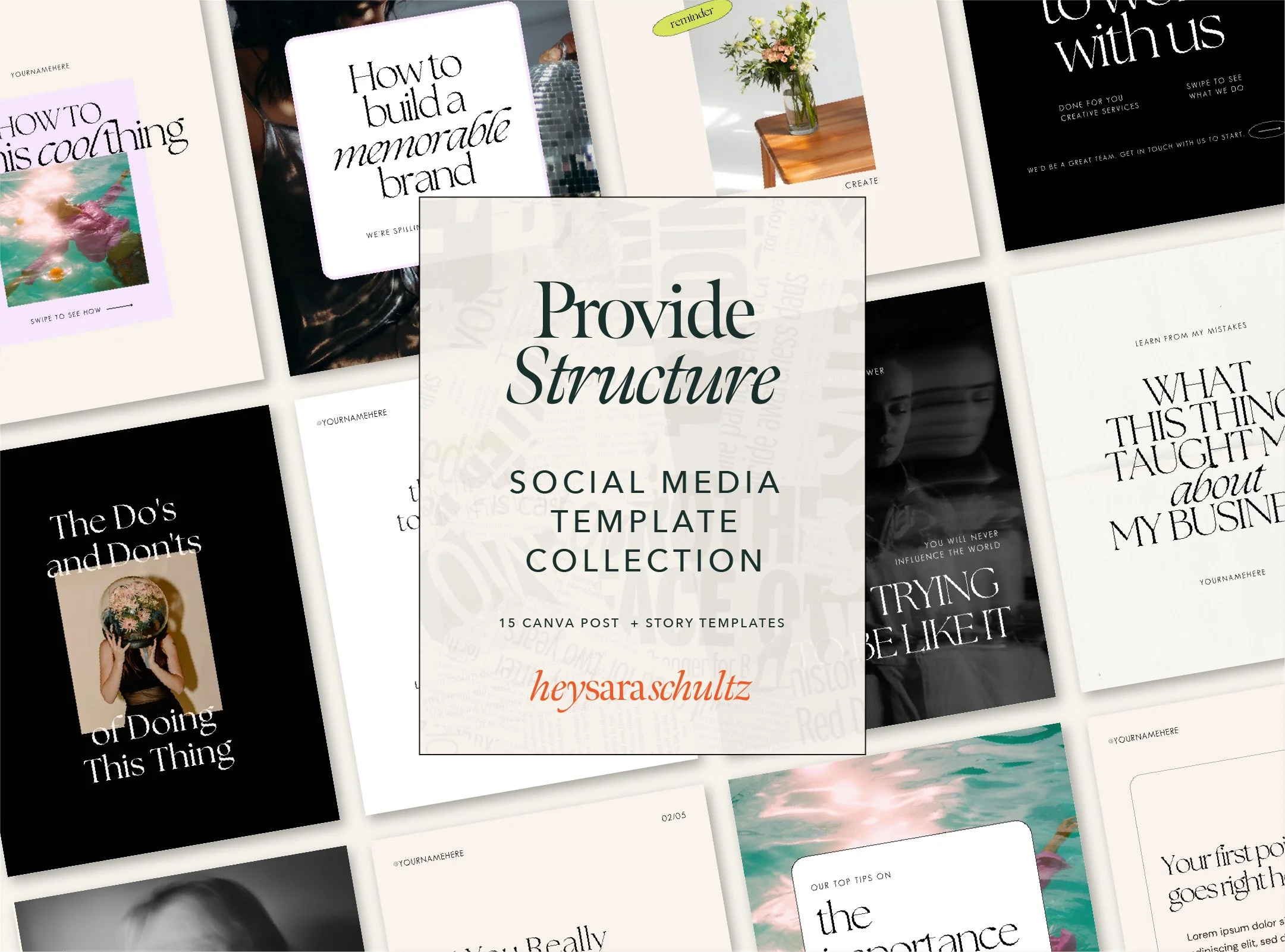 Our easy-to-edit Canva templates are just waiting for you to use on repeat, not only on Instagram, but across all your social channels, email, and even print collateral. Simply update these with your brand colors and fonts, drag and drop your images into the spaces provided, and add your own text. You’ll be creating obsess-worthy content in no time.